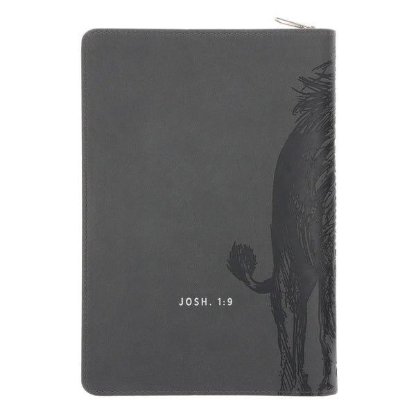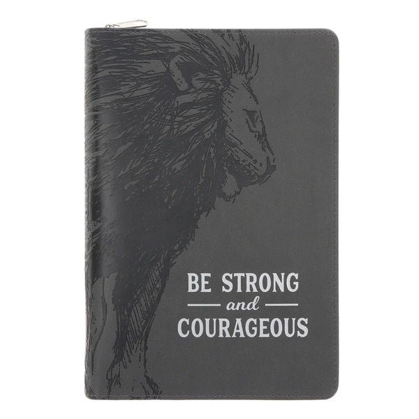Set some time apart to journal your thoughts and prayers in this Be Strong and Courageous Faux Leather Journal with Zipped Closure.