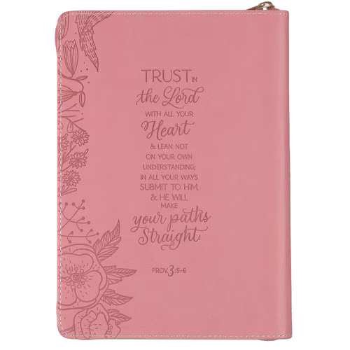 Each time you pick up the Trust With All Your Heart Pink Faux Leather Classic Journal with Zipper Closure, you will be reminded that a life of trusting in the Lord is filled with abundant blessings. As you document your prayers, reflections, aspirations, and worries within this elegant journal, you'll create a personal testament to the ways God has blessed and guided you. Looking back through its pages, you'll witness the unique journey of faith and grace that has brought you closer to Him.